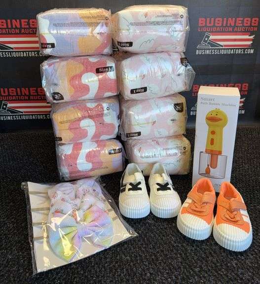 LOT 362 - Diapers, Kids Shoes, Bubble Machine & more!