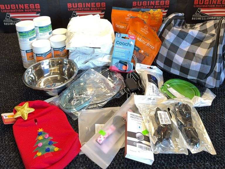 LOT 349 - Great Pet Lot, Air Tag Collars, Elevated Water Bowls, Treats, Travel Bag, & more!