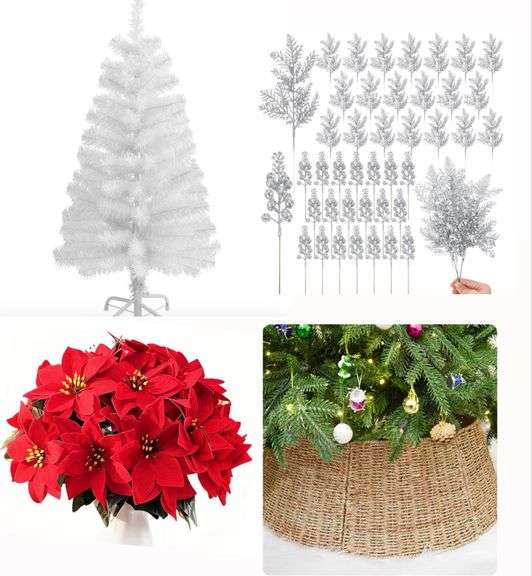 LOT 239k - Huge Christmas Lot, 3’ Tree, Decorations, (3) Ratan Collars & more!