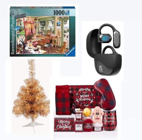 LOT 385bb - Great Christmas Gift Lot! Puzzles, Headphones, Christmas tree & more!