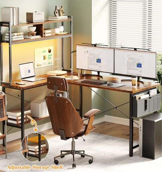 LOT 166 - L Shaped Desk Gaming Desk, 59" Computer Desk with LED Light & Power Outlet