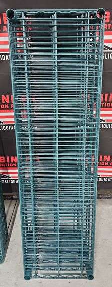 LOT 132 - (6) Green Coated Wire Shelves (Includes Wall Brackets) 14"×48" See Photos