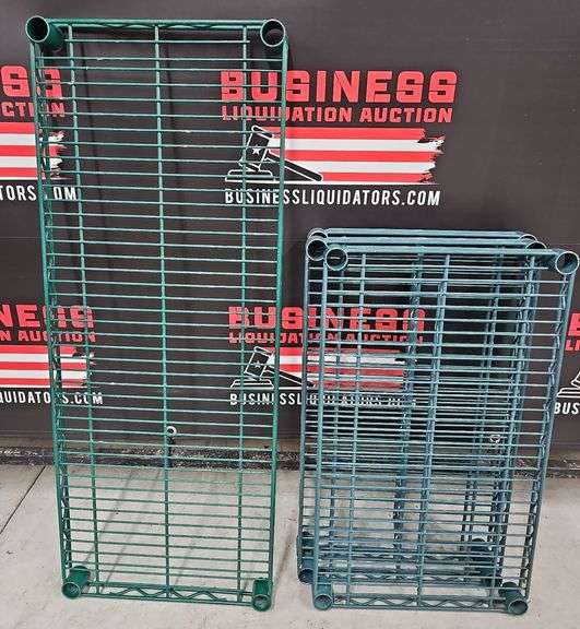 LOT 138 - (4) Green Coated Wire Shelves (4 sets Wall Brackets Included, see Photos), (1) 14"×36", (3) 14"×24"