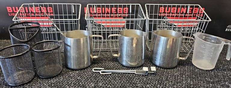 LOT 233x - (3) Wire Racks, (3) Frothing Cups, Wire Organizers, Measuring Cup and Stir Spoon